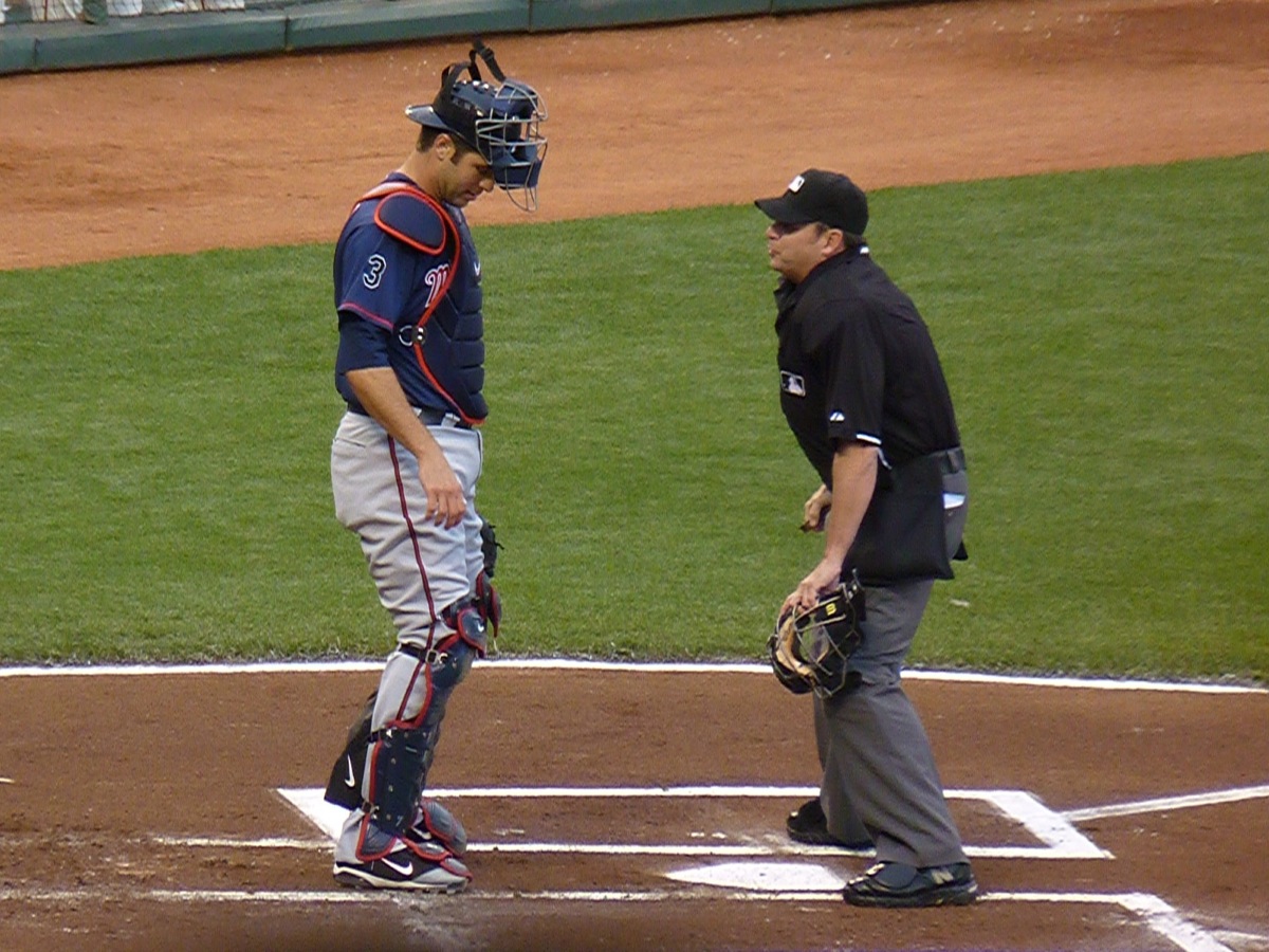 Mauer and Umpire Published November 2, 2011 at 1200 × 900 in Baseball Photography Umpire Andy Fletcher asks Joe Mauer for an autograph… maybe.