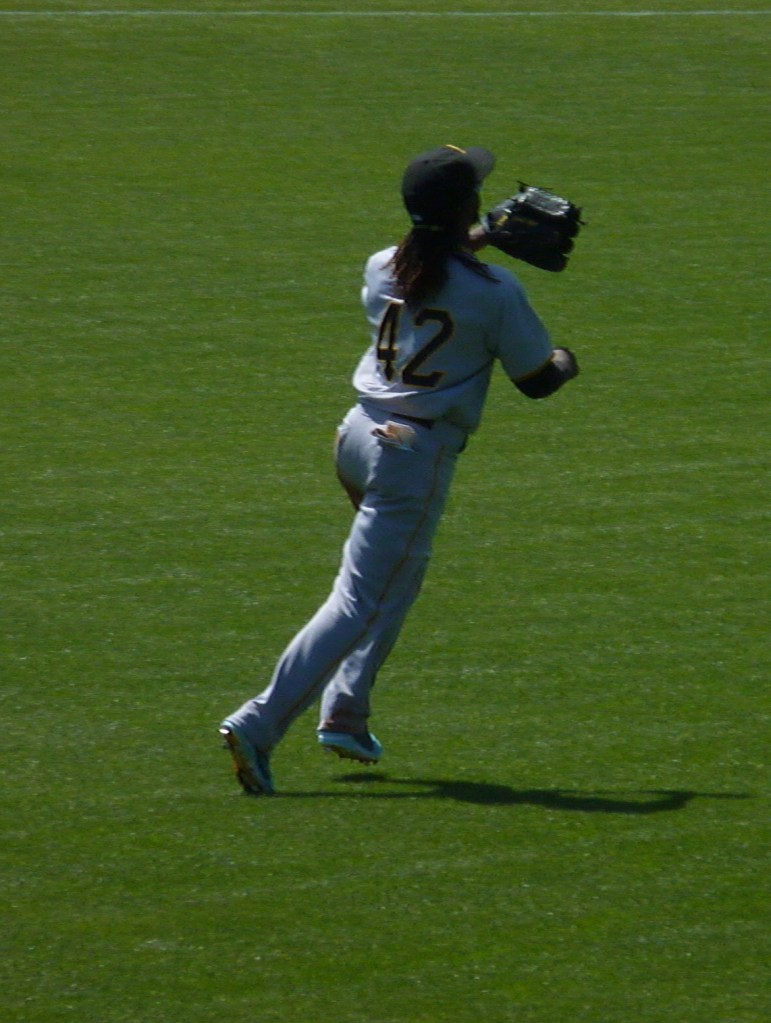 P1090398 Published April 15, 2012 at 1171 × 1555 in Giants 1, Pirates 4 Andrew McCutcheon makes a running grab in the centerfield
