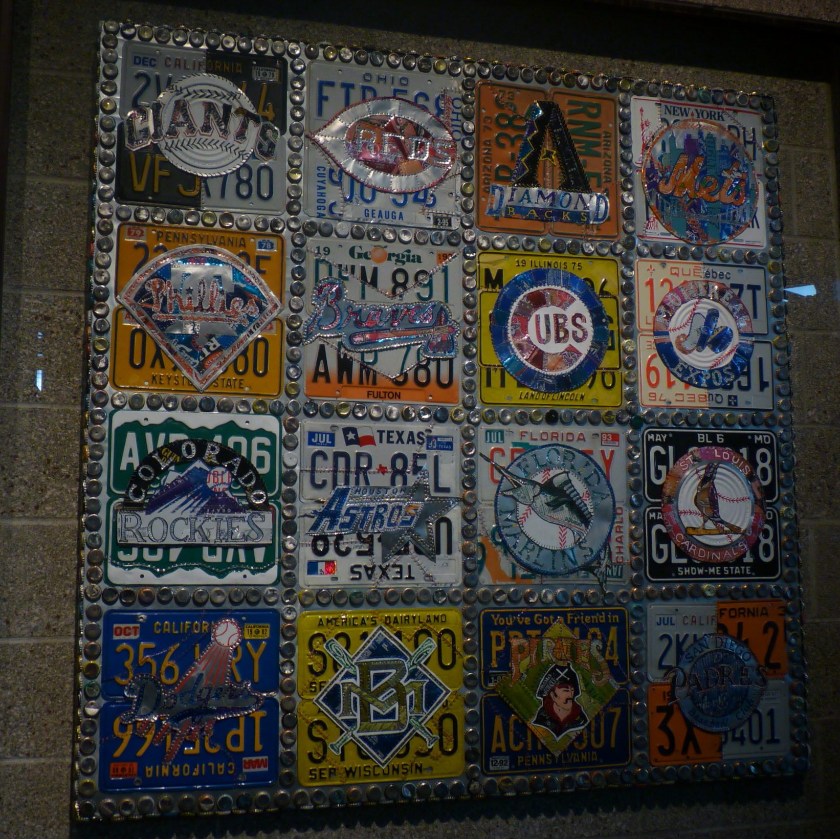 The National League teams Published May 4, 2012 at 1642 × 1640 in Twins 3, Mariners 2 The National League teams made up of license plates and soda pop cans