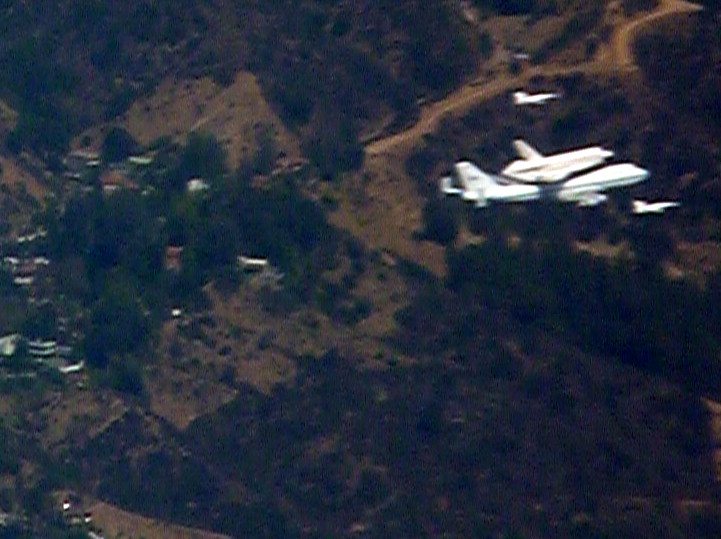 06-P1150997 Published September 21, 2012 at 721 × 539 in Chasing Endeavour’s Last Flight Down the California Coast Endeavour and her posse flying over the LA hills