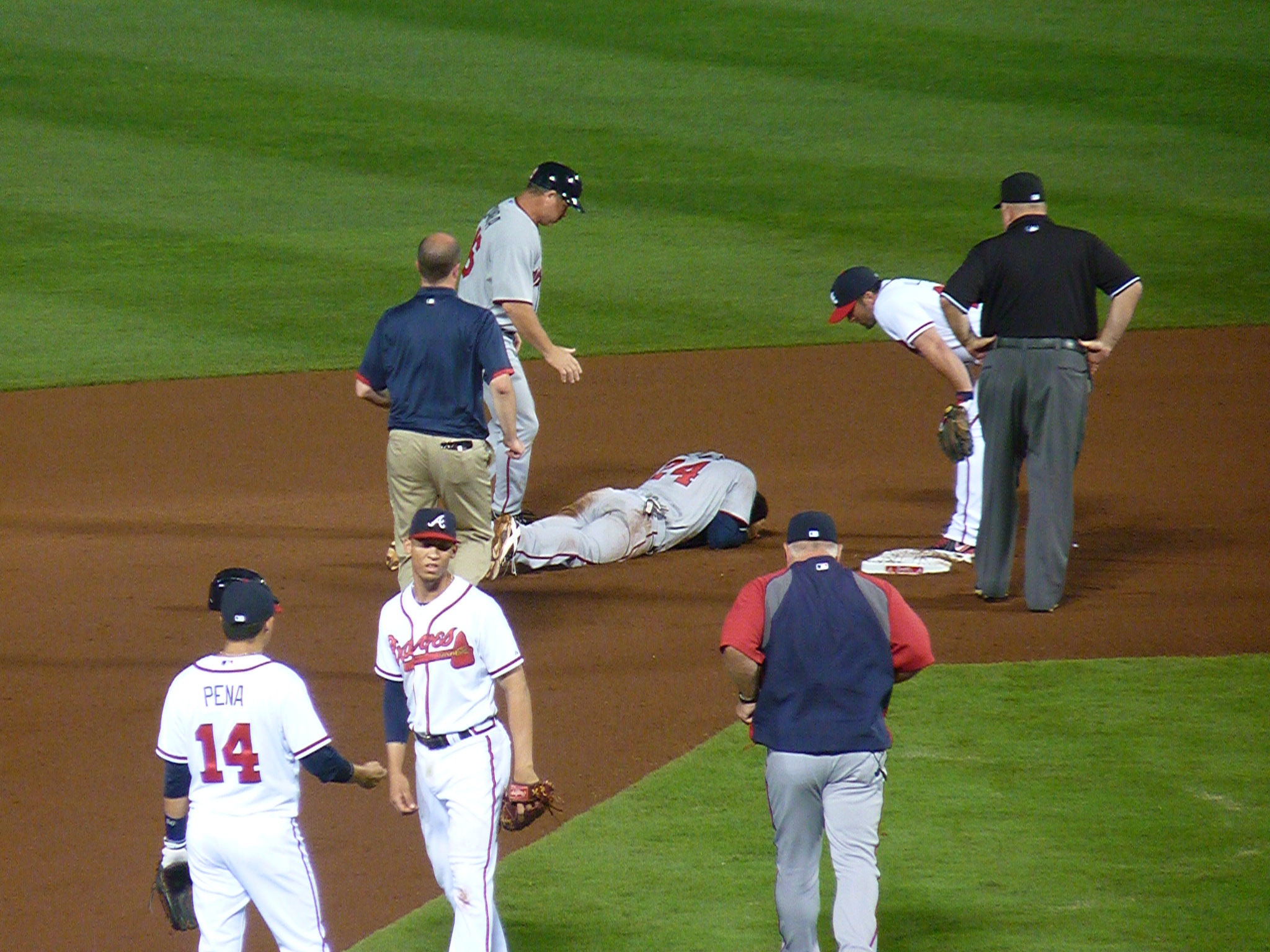 Plouffe is down… possibly with a concussion Published May 23, 2013 at 2048 × 1536 in Twins 4, Braves 5; Twins 3, Braves 8 Plouffe is down… possibly with a concussion