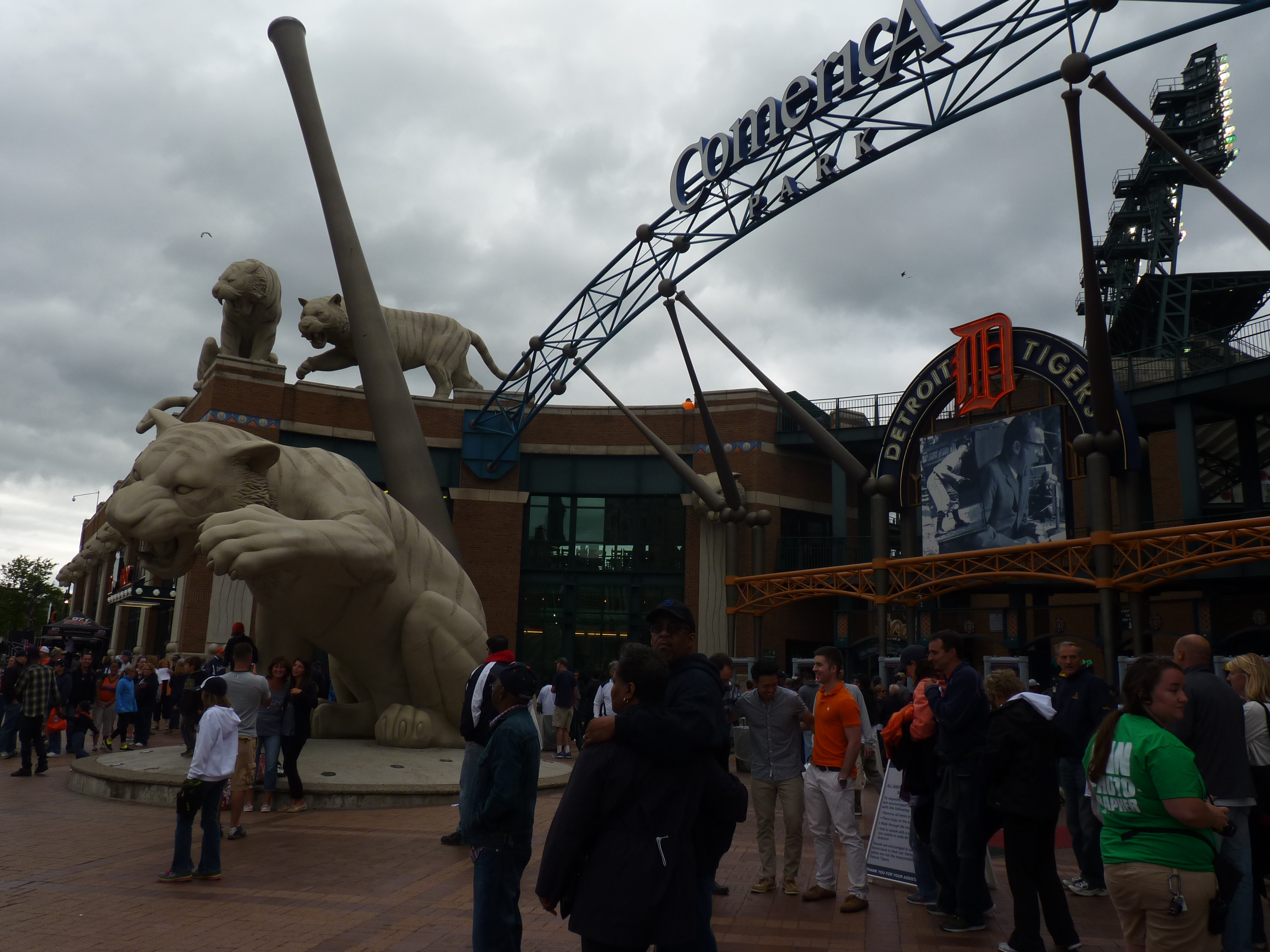 Comerica Park Published June 18, 2014 at 2560 × 1920 in Twins 2, Tigers 0 The entrance to Comerica Park… we discussed what it might be like if AT&T Park was covered in giants